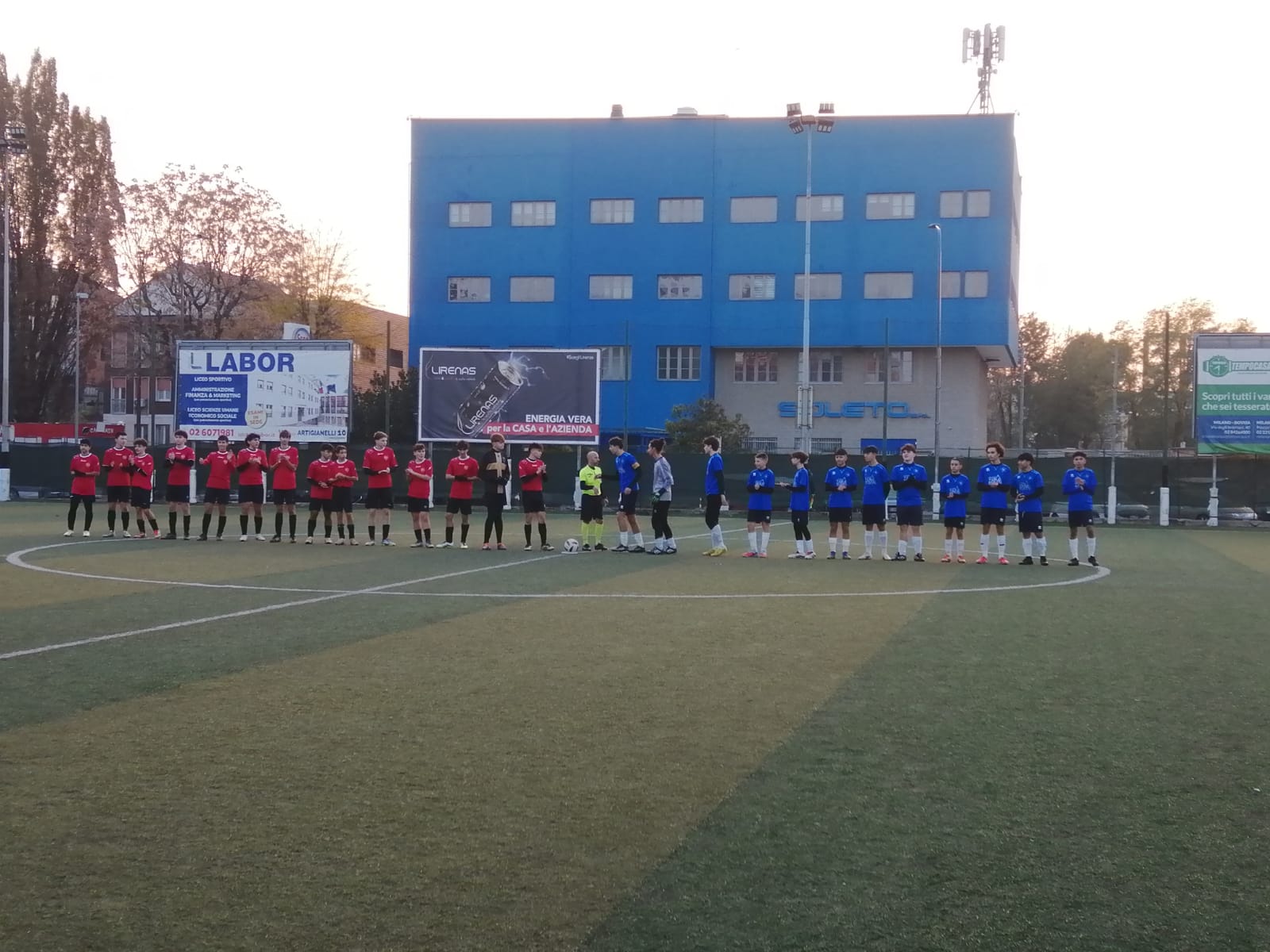 Il primo tempo registra il vantaggio ospite al minuto 14: bravo il loro avanti a correggere al volo, in diagonale rasoterra, una palla vagante appena dentro area.