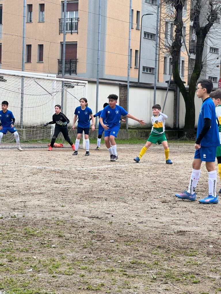 All’inizio del primo tempo è il Real che prova ad affacciarsi nella metà campo avversaria. Dopo alcuni tentativi di creare pericoli alla difesa del Precotto, è però la squadra ospite ad andare in vantaggio al primo tiro in porta della gara. La risposta del Real è a dir poco immediata: appena battuto il pallone a centrocampo Gabriele scarica un destro da distanza siderale che coglie l’estremo difensore di sorpresa e gonfia la rete. Si è passati così dallo 0-0 all’1-1 in pochissimi istanti. È qui che i nostri prendono fiducia e si portano in vantaggio grazie a un preciso destro di Sofia che vale il 2-1. A questo punto della gara l’ago della bilancia pende nettamente a favore nostro e sfioriamo in più occasioni il gol dell’ulteriore vantaggio.
