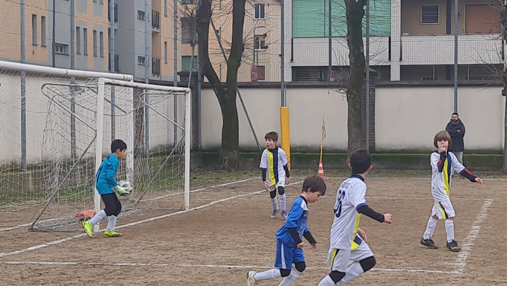 Il Rosario prova subito a sbloccare il risultato con manovre avvolgenti. I nostri Under 9 resistono e allontanano la minaccia. Nicolò compie un grande intervento deviando un tiro insidioso indirizzato nell’angolo lontano.
